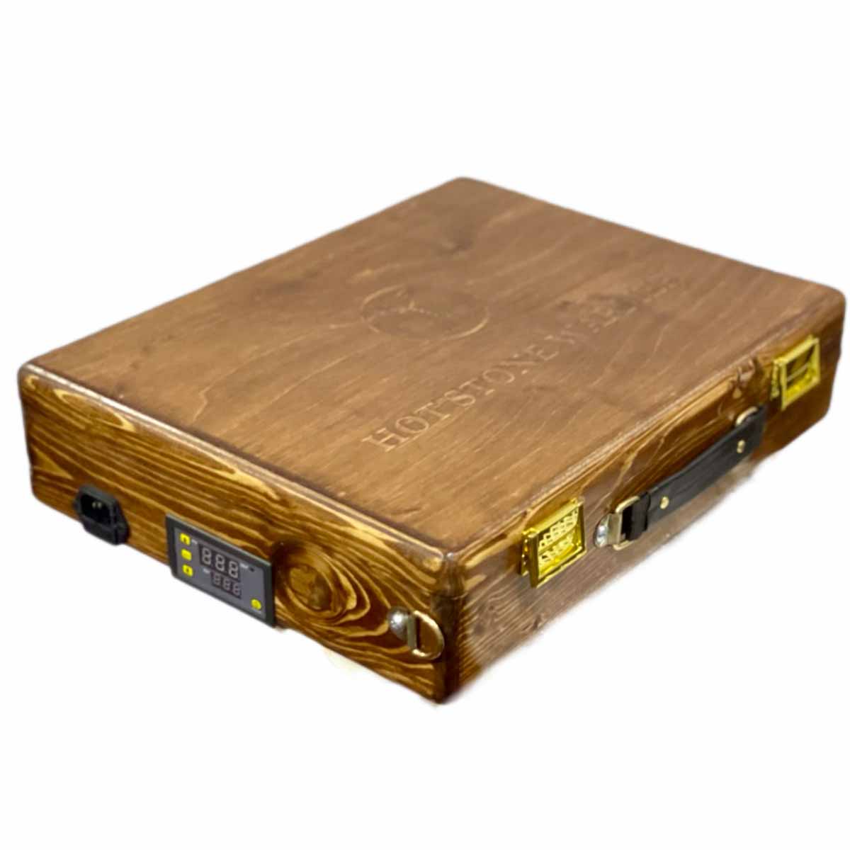 هیتر برقی سنگ داغ چوبی HotStone Heater یکی از مهم ترین ابزار برای ماساژ هات استون یا سنگ داغ میباشد، در این نوع ماساژ سنگ های آتشفشانی یا بازالت، سرپانتین توسط هیتر گرما دیده و سپس در نقاط مشخصی از بدن قرار داده می شوند، این هیتر سنگ داغ حالت کیفی دارد و از جنس چوب روس درجه یک بوده و محفظه داخلی آن از جنس آلومینیوم میباشد، همچنین دارای قابلیت تنظیم دما تا 68 درجه میباشد.