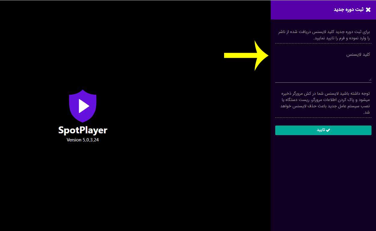 بعد از نصب اپلیکیشن، کد لایسنس را وارد کنید.